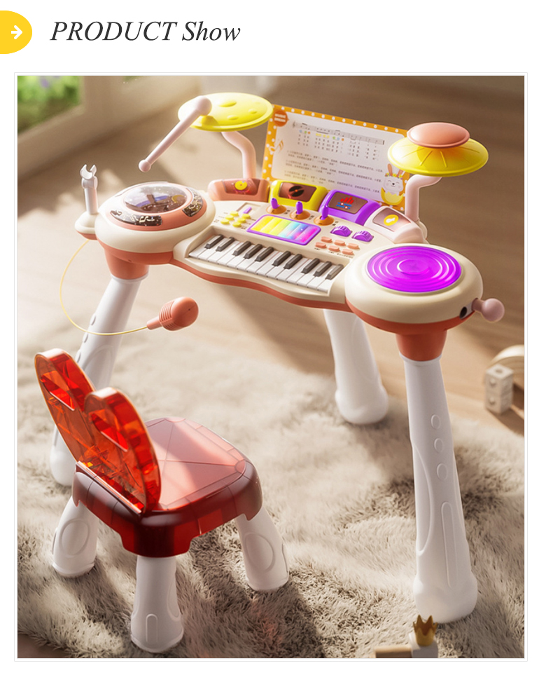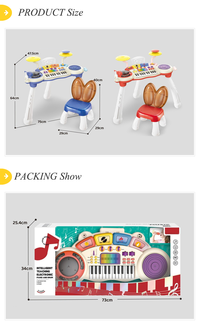 Home > Product Show > Music Instrument Learning Teaching Children Electronic Keyboard Piano and Drum Toys with Chair